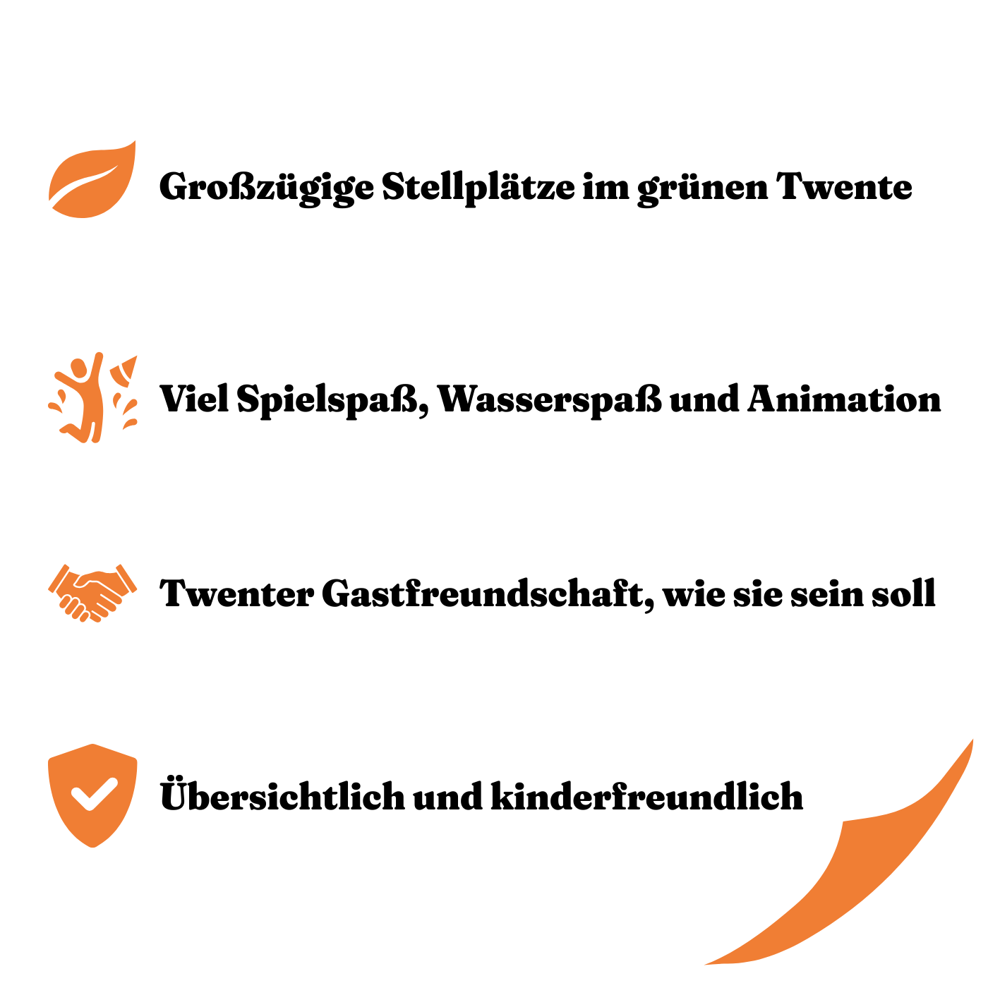 Unser Campingplatz liegt im schönen Dinkeltal bei Lattrop. Mit dem Schwimmbad, dem Spielteich, den Spielplätzen und dem Animationsteam gibt es jeden Tag etwas zu erleben – während Sie als Elternteil wirklich entspannen können.