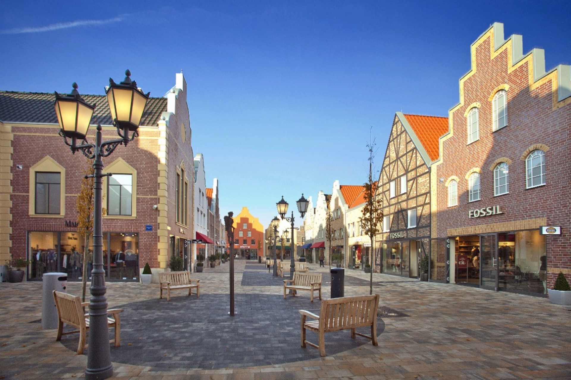 • Een overzichtelijk outletcentrum in de buitenlucht